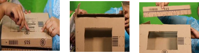 • Close the box from the top using the flaps removed earlier. Make two holes on the flap so the sticks can pass through. Secure the flap with cello tape.