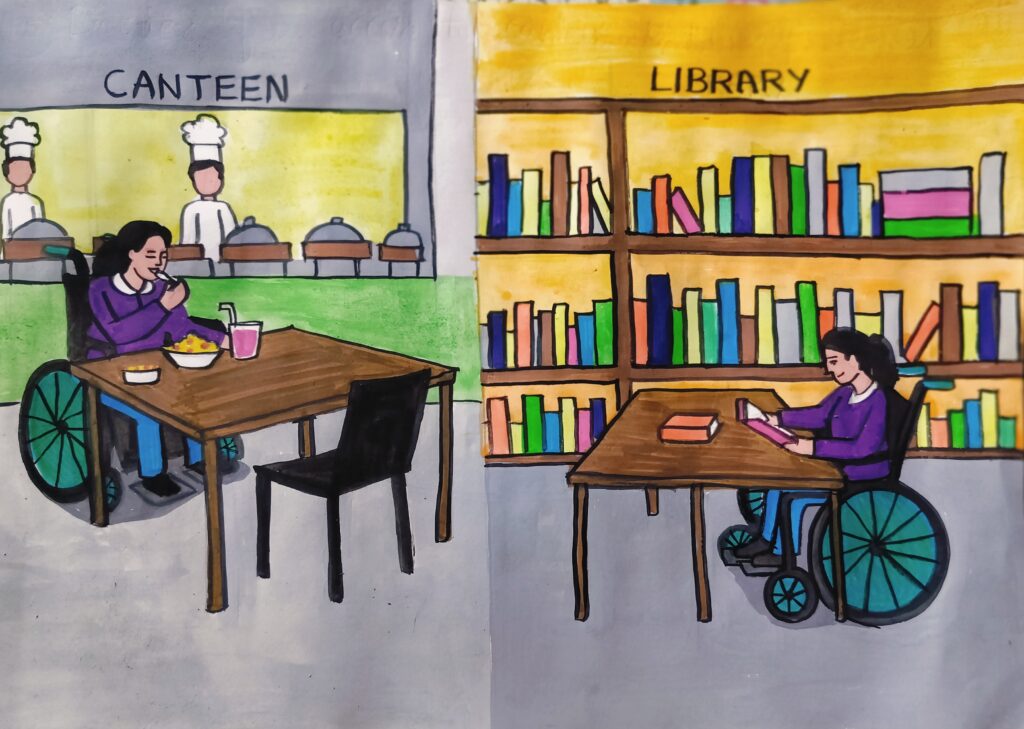 In most schools, the libraries are not physically accessible to children with special needs. The experience of visiting a library, browsing through books from the shelves and making notes sitting in the library are all part of learning. The library can be made accessible by arranging for