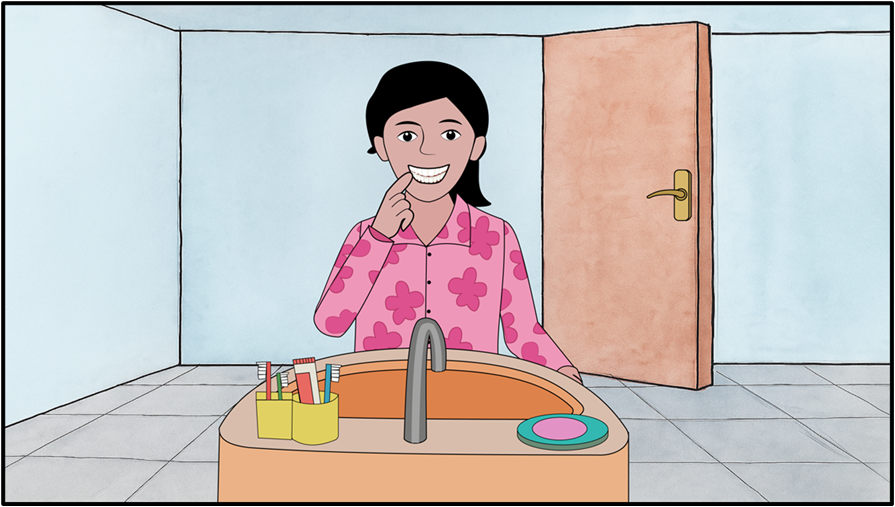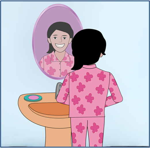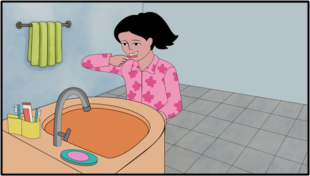 Goal: To help the child understand the importance of brushing teeth twice a day and its role in removing germs that can cause cavities and bad breath.