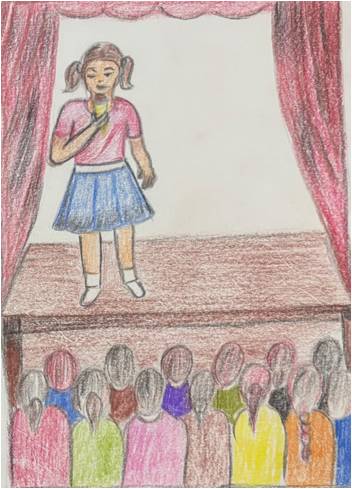 Primary level: Basics of Nature drawing, Geometric drawing, human & animal figures, colouring with different mediums. Craft moves up to origami, creative craft, clay work, innovative craft using various materials. Solo and chorus music and exposure to various dance forms. Many children start formal training in dance and music outside the school at this stage. In the area of public speaking children move up to short speeches, elocution and recitation of longer poems. Drama, acting and stage presentations are added. Languages may be more than one according to the environment in the school.