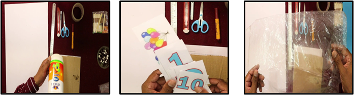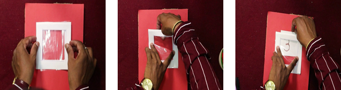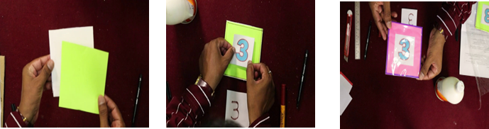 - Fix the frames by applying glue only on three sides, leaving the top open. This will create an open pouch, which will be used for inserting the matching number/ picture card.