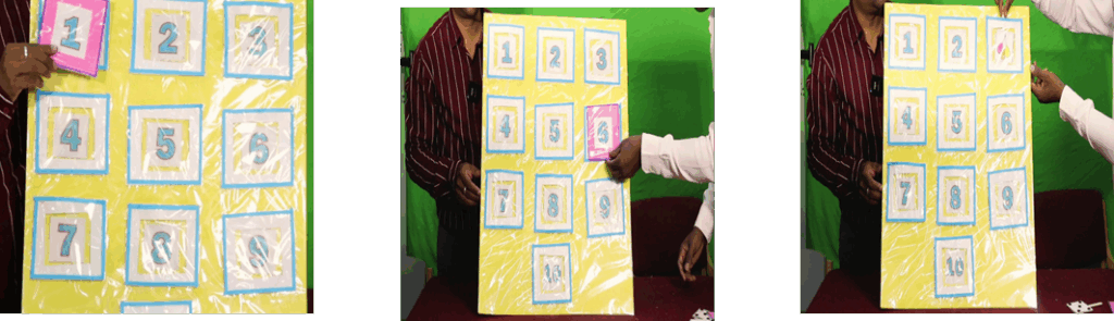 - Print out or write the numbers 1 to 10 on 8×8 cm-sized sheets.