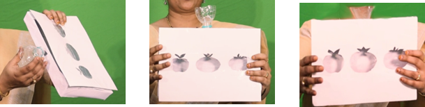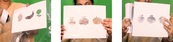 • Take the thermocol balls of the colour corresponding to the objects marked in the box.