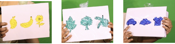 • Similarly, boxes can be prepared for displaying other primary colours also. Children may be asked to fill the boxes with the balls and identify the objects and colour.
