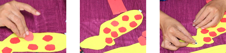 - Cut small red patches from foam sheet and paste them on the cheetah’s body to represent spots. Attach a googly eye on the face.